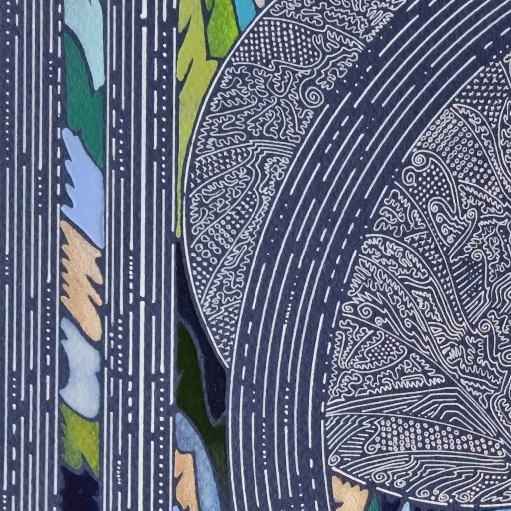 J’ai tellement couru après le temps, une grande partie de ma vie a été rongée par le temps, à vouloir faire, faire, et encore faire, toujours plus. J’ai finalement compris que le temps n’avait rien à voir avec mon fonctionnement, que c’était moi qui me mettait des injonctions, des obligations. Depuis mon rapport au temps a été profondément changé. Je lui rends grâce ici, avec cette oeuvre.